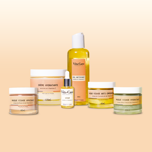 Chez Vita-Care, nous croyons en la puissance de la nature pour révéler la beauté naturelle de votre peau. C'est pourquoi nous sommes fiers de présenter notre gamme de cosmétiques à la Vitamine C, soigneusement formulée dans un laboratoire français pour répondre aux besoins spécifiques de chaque type de peau.