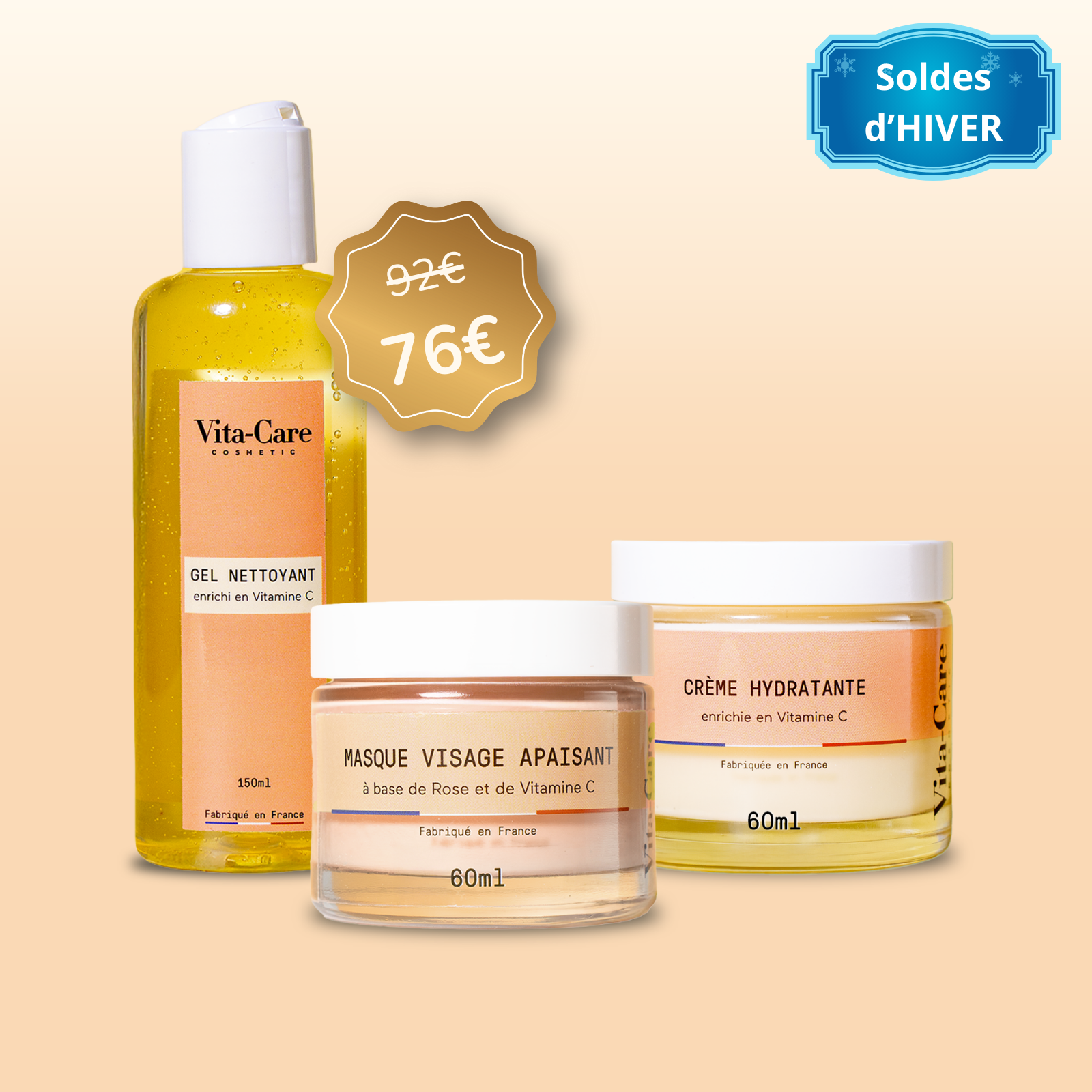 Chez Vita-Care, nous croyons en la puissance de la nature pour révéler la beauté naturelle de votre peau. C'est pourquoi nous sommes fiers de présenter notre gamme de cosmétiques à la Vitamine C, soigneusement formulée dans un laboratoire français pour répondre aux besoins spécifiques de chaque type de peau.