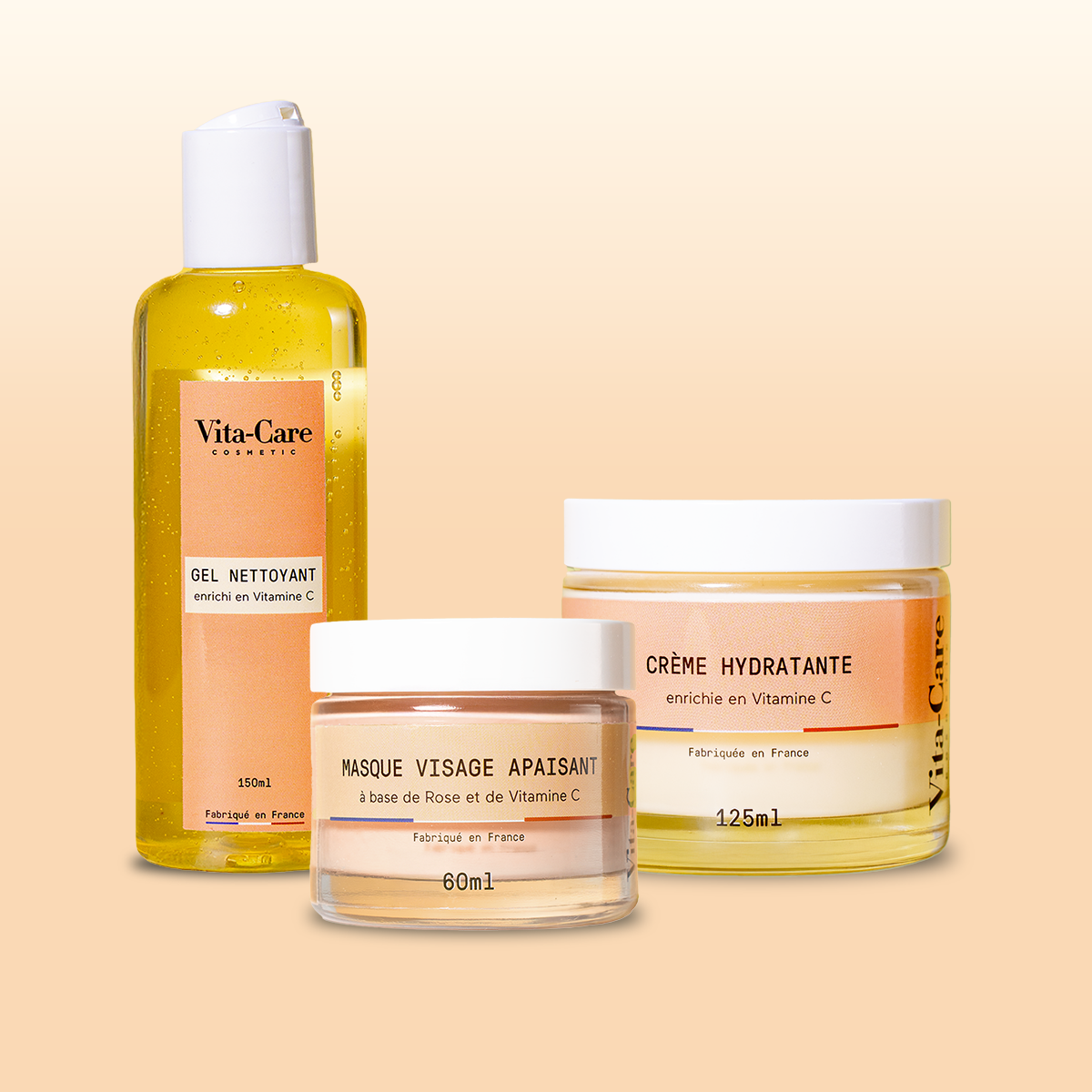 Oui, le masque a été formulé pour s’intégrer parfaitement à votre routine Vita-Care. Il complète l’action du gel nettoyant et de la crème hydratante, pour des résultats visibles et durables.